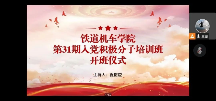 为帮助入党积极分子进一步掌握党的理论知识,提高党性修养,切实保证党员发展质量,铁道机车学院举办第31期入党积极分子培训班。11月28日,举办了线上开班式,参加会议的有铁道机车学院学生党支部书记王蒙,支部全体党员以及培训班学员,会议由祝恺滢老师主持。