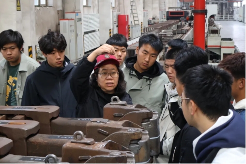 走进车辆段,巨大的厂房内机器轰鸣声不绝于耳,“安全保生产,作业零违章”的标语赫然悬挂,警醒着检修人要以“时时放心不下”的责任感,筑牢铁路安全生命线。师生们在工作人员的带领下,深入了解车辆检修的流程与标准。在车轮车间,工作人员重点介绍了热轴、剥离、崩轮及裂损等典型故障案例及解决办法;示范了车轴自动检测机的使用方法。无论是从车辆的外观检查到内部机械结构检测,还是从探伤诊断到维修处理,每一道作业线都要有条不紊,每一个步骤都须操作得当。因为车辆检修背后所承载的是列车的安全运行,更是每位乘客的生命财产安全。