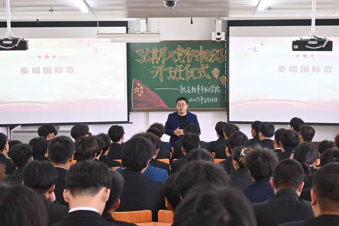 为进一步加强党的基层组织建设,做好党员发展工作,5月17日,铁道机车车辆学院在教学楼西301教室举办第三十六期入党积极分子培训班开班仪式。参加开班式的有学院学生党支部书记王蒙,组织委员周峰好,宣传委员李丹和全体培训班学员,开班式由杨鹏程主持。